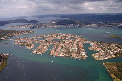 While the Woy Woy Peninsular lies only a matter of some 40 kilometres by sea from the Sydney CBD, this distance is increased to nearly 100 kilometres for road and rail travellers due to the nature of the intervening terrain which encompasses Broken Bay and the Hawkesbury River with its many inlets and precipitous gorges.